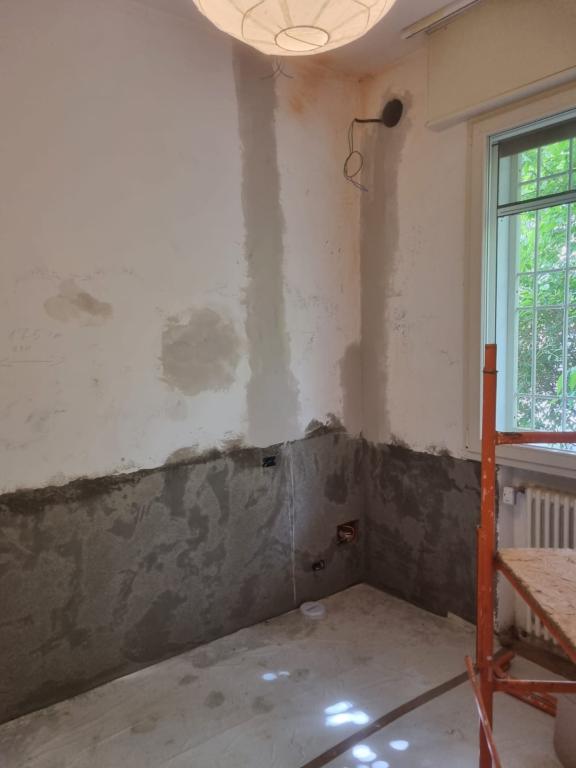 Per creare uno sbarramento alla penetrazione dell’umidità per capillarità, abbiamo effettuato un trattamento ad iniezione di specifico composto silano-silossanico, con almeno il 60% di composto attivo, certificato da ente notificato indipendente, non infiammabile, idoneo anche su muratura satura fino al 95% di umidità, tipo Mungo Safeguard DRYZONE